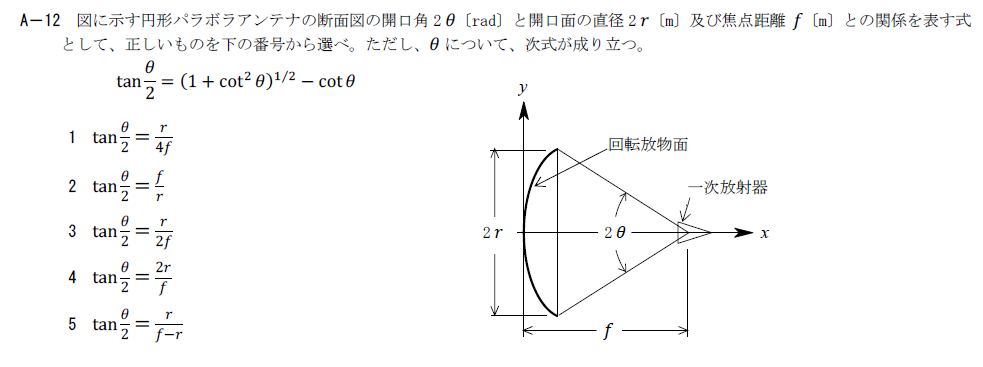 \[ \tan \frac{\theta}{2}=\frac{r}{2f} \] となるので答えは3です。