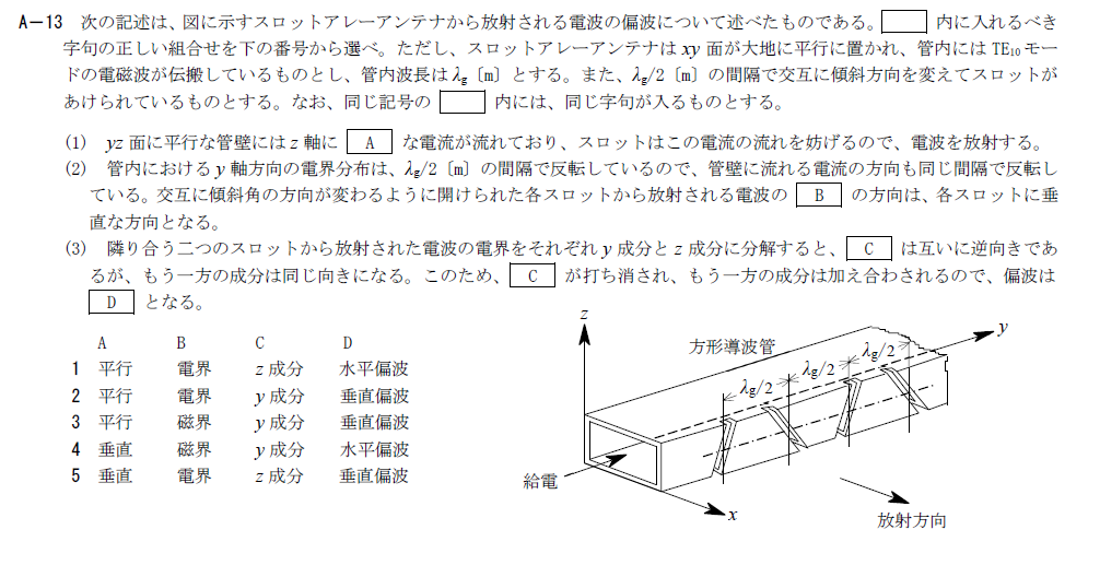 スロットアレーアンテナに関しては頻出で、同様の問題が何度も出題されています。