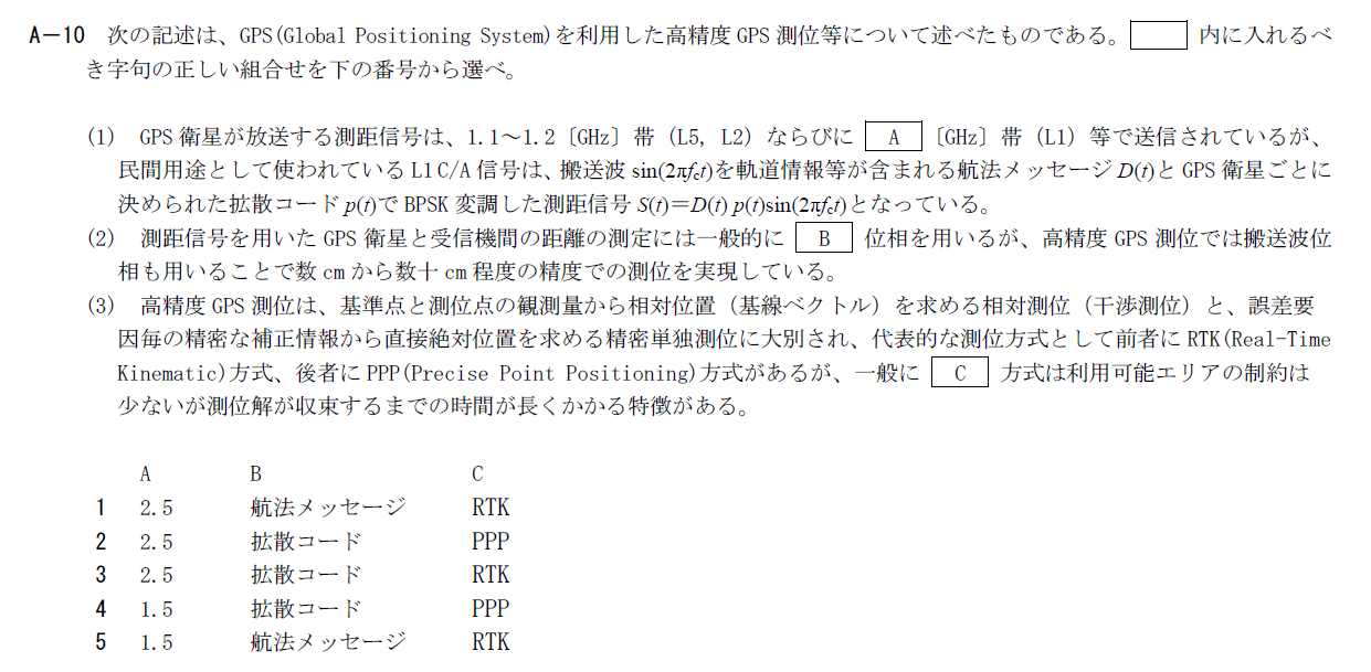 高精度GPS測位等に関する問題です。