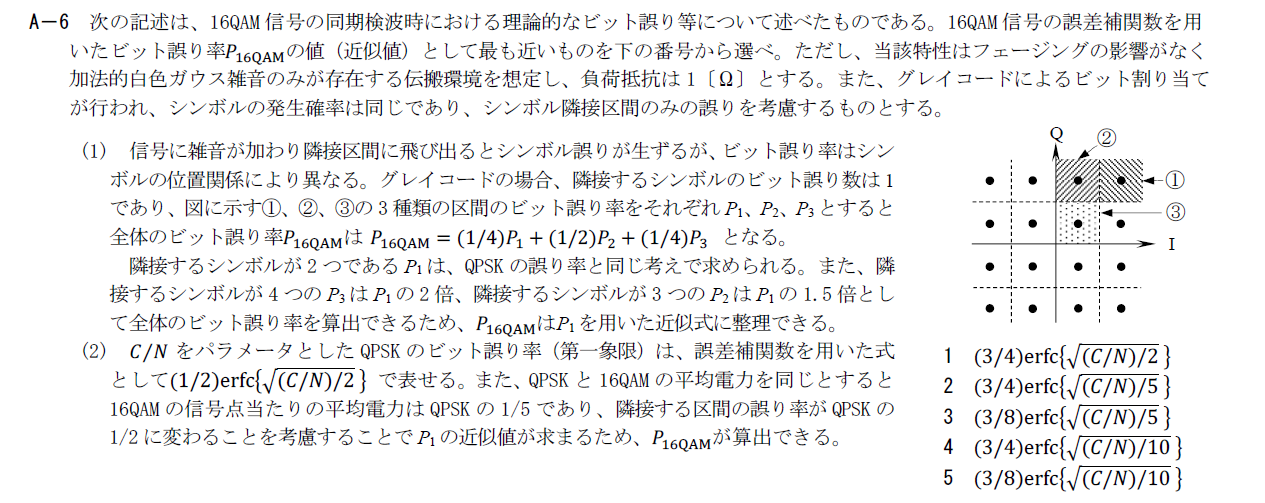 16QAMの理論的なビット誤りに関する問題です。