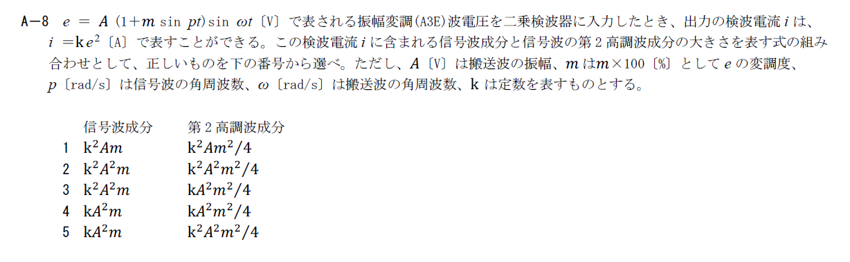 二乗検波に関する計算問題です。