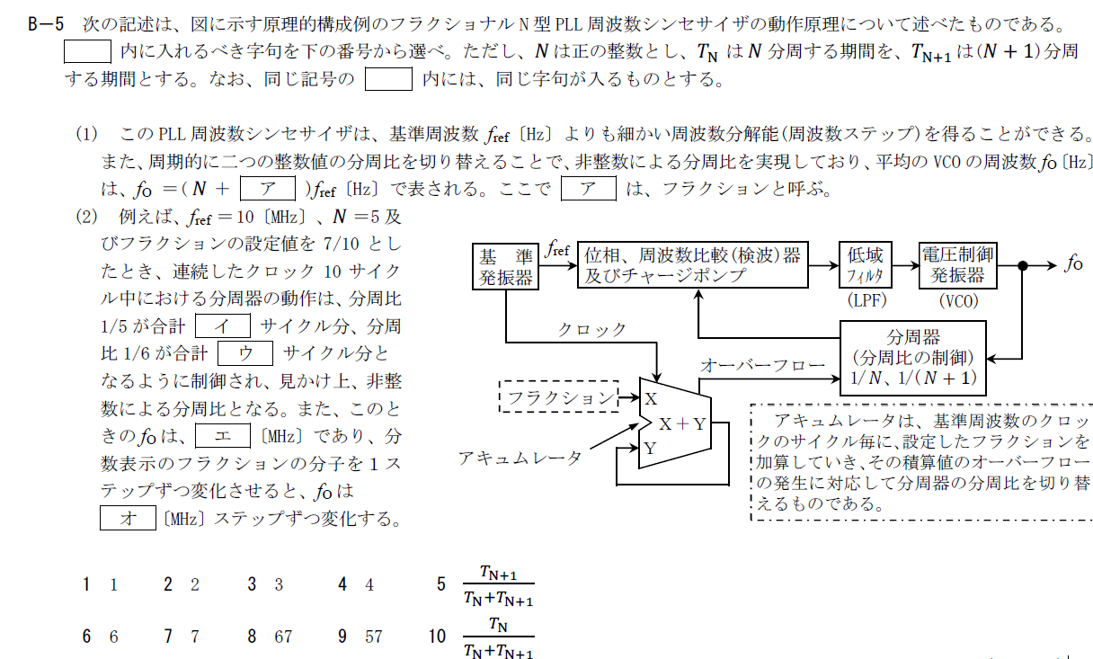 フラクショナルN型PLL周波数シンセサイザに関する問題です
